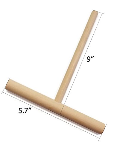 7.9", 5.7" and 3.1" Wood Crepe Spreader. T shaped, used to spread a thin layer of batter for making crêpes. Size : 7.9"-Inch x 9-Inch 5.7-Inch x 9-Inch and 3.1-Inch x 9.4-Inch. Made from natural materials -Beechwood Before using the spreader soak in water to prevent it sticking to the batter.Feature