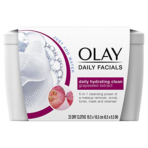 Olay Daily Clean 4-in-1 Water Activated Cleansing Cloths Tub, 33 Count Packaging may Vary
