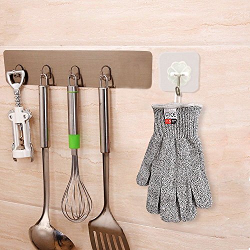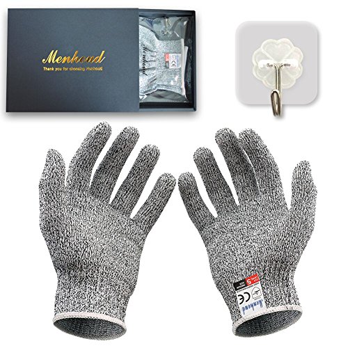 Premium Cut Resistant Gloves with Wall Hooks - Menhoud Level 5 Protection Food Grade EN388 Certified, Safty Gloves for Yard-Work, Kitchen Glove for Cutting and Slicing,1 Pair (Large)