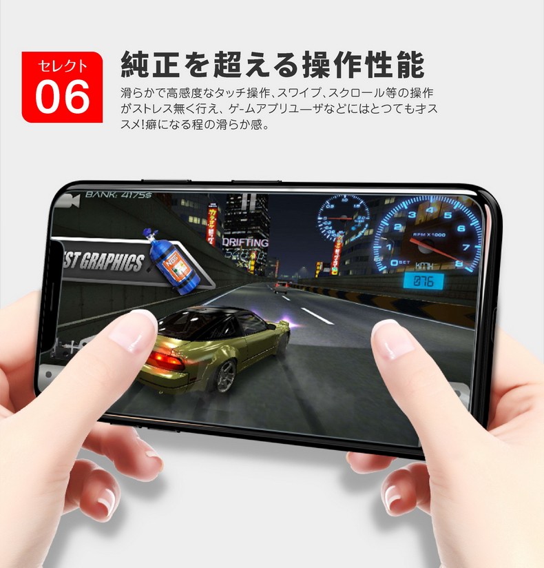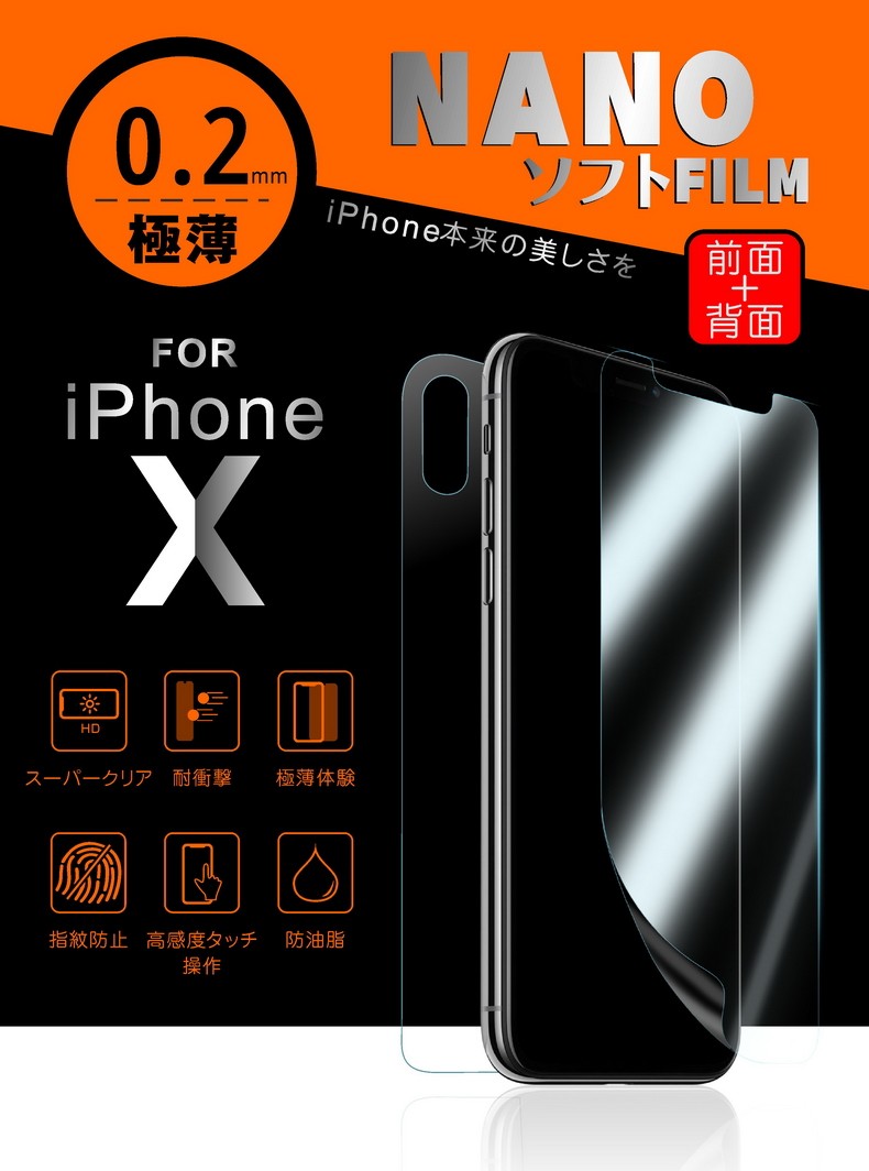 対応機種・iPhone X【 新世代保護フィルム 】ガラスフィルム全盛の今最新技術の賜物ナノ素材ソフトフィルム誕生ガラスフィルム最大の弱点湾曲に耐え、ソフトフィルムながら硬度6Hを実現貼っていないかのようなスーパークリアビューにより有機ELディスプレイの色彩美をそのままにディスプレイを完全ガード。耐油、耐衝撃、指紋防止加工などのガラスフィルムによくある加工を完全網羅しつつも、ガラスフィルムでは実現不可能な0.2mmの極薄設計iPhoneXの高価なディスプレイは割りたくない、汚したくない でもガラスフィルムの厚みやiPhone本来の美しいデザインを壊すのは嫌だ....そんなわがまますべてに答えられる性能を備えた新世代のディスプレイ保護フィルム誕生です。
