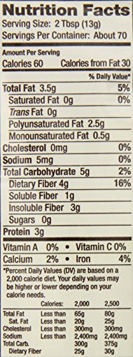- Feature : Case of four 32-ounce packages (128 total ounces) / Made from pure organic golden flaxseeds / An excellent source of protein, fiber, and minerals such as magnesium and copper / Adds a robust, nutty flavor to baked goods and cereals / Packaged in Milwaukie, Oregon