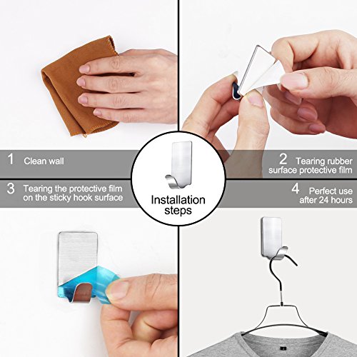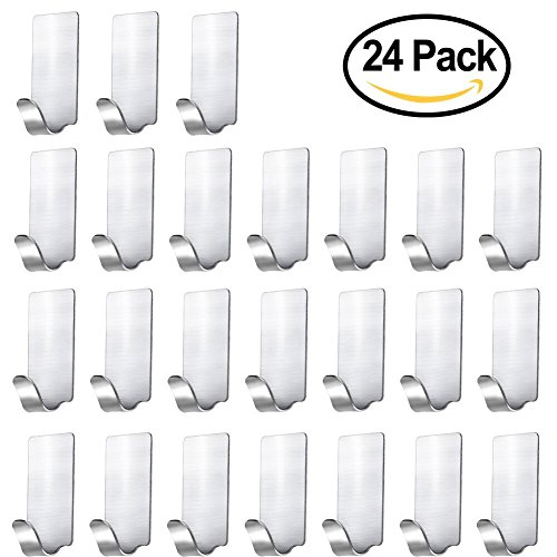 Accmor 24 PCS Mini Adhesive Hooks, 18/8 Stainless Steel Self Adhesive Hooks, Strong & Durable
