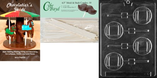 Cybrtrayd Torah Scroll Lolly Chocolate Candy Mold with 50 4.5-Inch Lollipop Sticks and Chocolatier's Guide