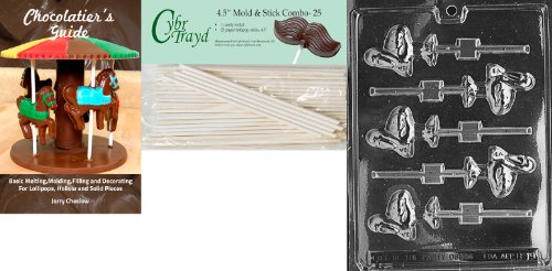 Cybrtrayd 'Stork Lolly' Baby Chocolate Candy Mold with 25 4.5-Inch Lollipop Sticks and Chocolatier's Guide