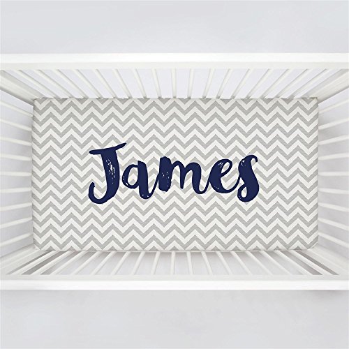 -. Title : Carousel Designs Personalized Custom White and Silver Gray Chevron Crib Sheet James Idea