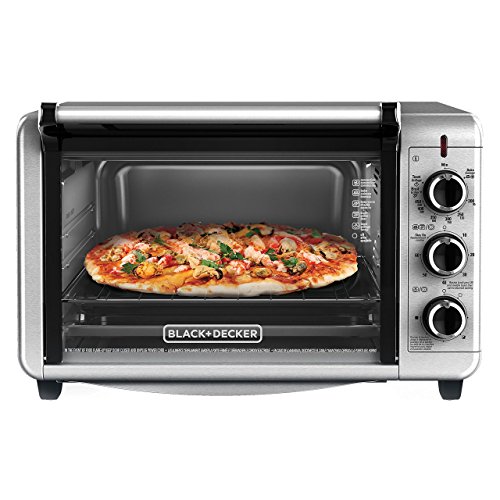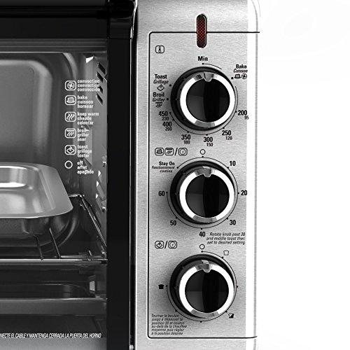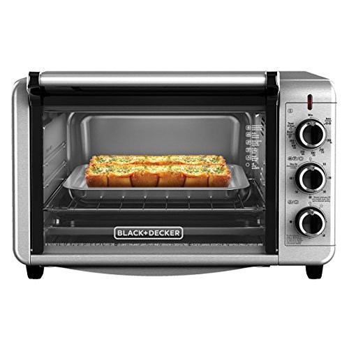 Designed to cook up to 20% faster than previous models, the BLACK+DECKER 6-Slice Stainless Steel Countertop Convection Toaster Oven with Broiler Pan is built to satisfy hunger. With substantial interior space, you can easily cook a 12” pizza or even six slices of bread. The light-to-dark toast timer allows for easily repeatable variation depending on what you’re making. It comes with a baking and broiler pan that fits perfectly in the oven. Plus, toasting, baking, and broiling are all available cooking functions on this handy convection toaster oven. When it’s time to eat, trust the #1 brand in toaster ovens*?BLACK+DECKER. Large viewing window keep an eye on food during cooking. The durable glass window gives you a clear view of food throughout the cooking process. Removable crumb tray keeps counters clean and makes it easy to remove crumbs before they burn in the bottom of the oven.