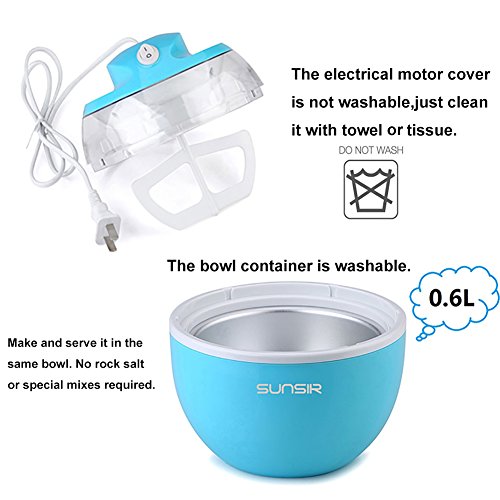 SunSir Mini (0.6 Quart/ 0.6L) Automatic Ice Cream Maker, Frozen Fruits Sorbet Maker, Ice Cream Machine for Kids With User Manual & Ice Cream Recipes-- Own Healthy Ingredients