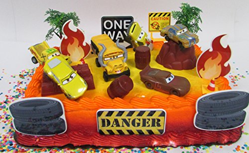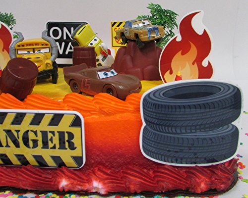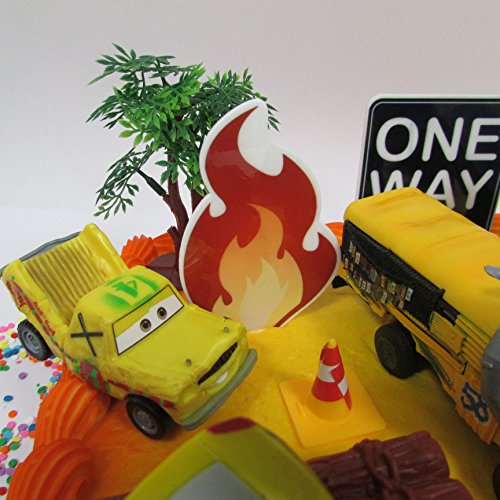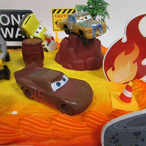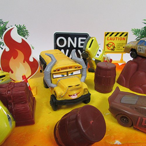 Cars 3 Thunder Hollow Speedway Demolition Derby Birthday Cake Topper Set Featuring McQueen and Friends and Decorative Themed Accessories
