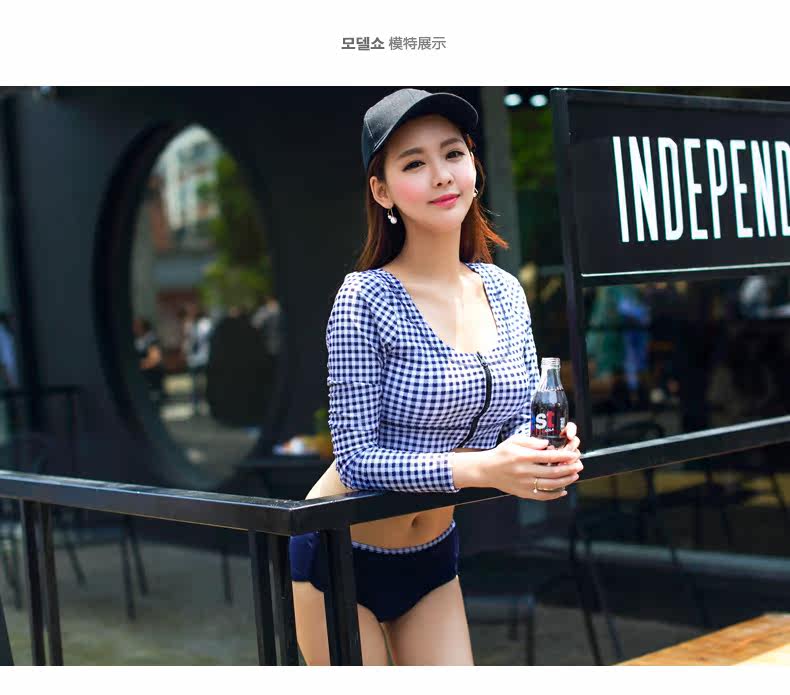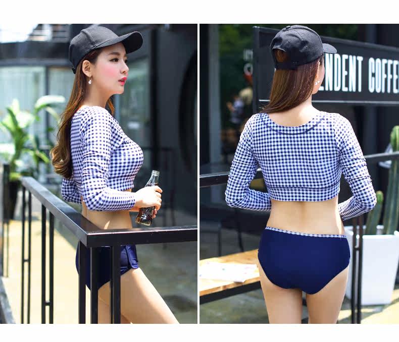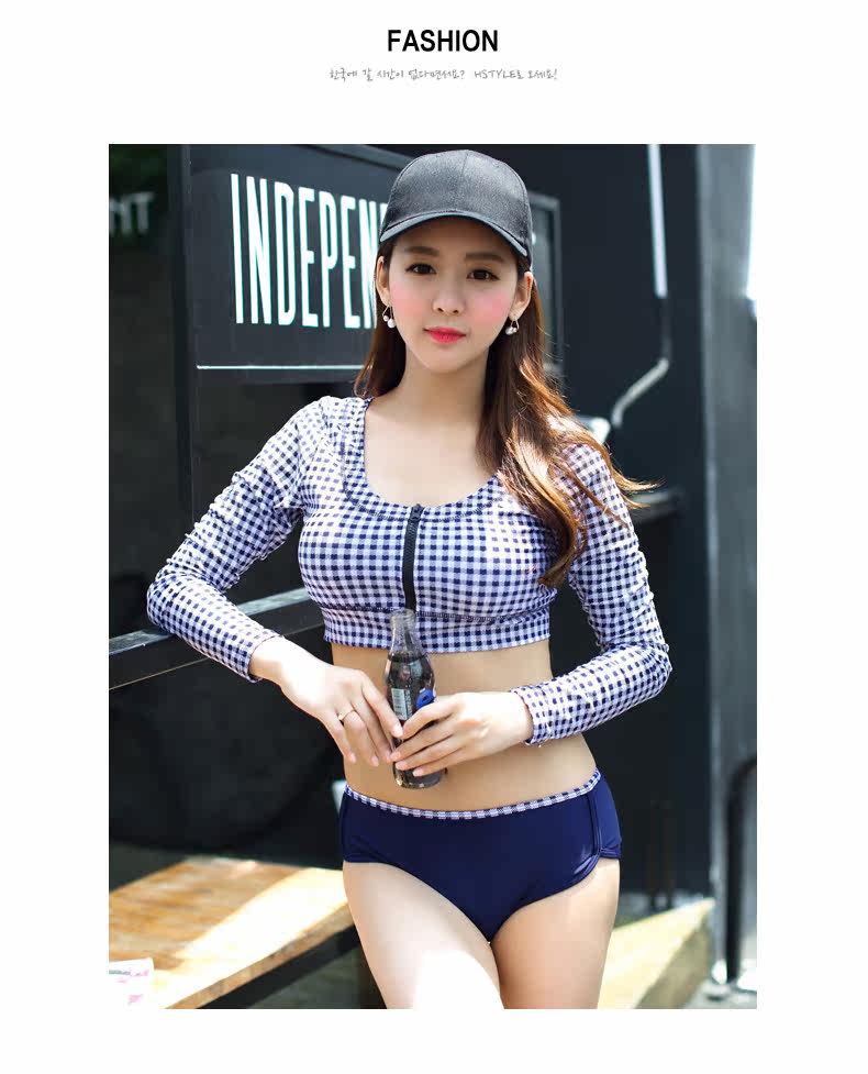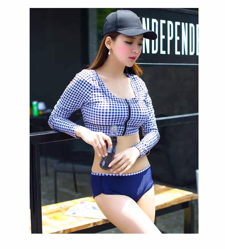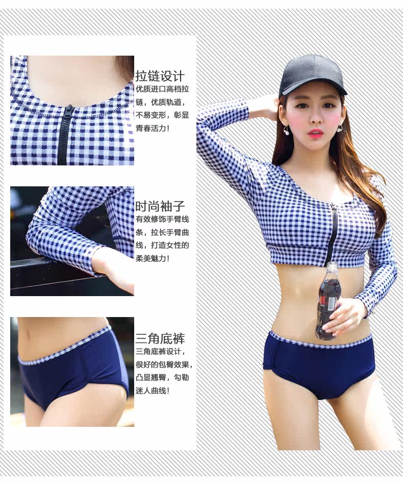 韩版新款运动式平角分体游泳衣女钢托大小胸聚拢