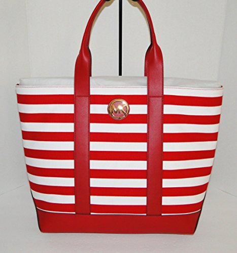 -. Brand : Michael Kors -. Color : Red/White -. Department : womens -. EAN : 0190864434063 -. Feature : Large tote crafted in striped canvas trimmed in leather. / Front logo medallion. Custom goldtone hardware. / Back slip pocket. Top handles, 7.5" drop Open top. / The interior stows essentials for any getaway. Lined. Interior features zip pocket & 4 slip pockets / 14/16" W x 13.5" H x 5" D -. Model : 38S7CFCT3C -. ProductGroup : Shoes -. ProductTypeName : HANDBAG -. Size : One Size -. Title : Michael Kors Fulton Striped Canvas Large Tote, Red/White -. UPC : 190864434063