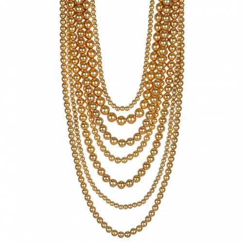 Simple Elegant Chunky long multi layered »Gold frost finish Metallic Coated Simulated-Pearl Beads multi Size 18"-30" long chain lobster clasp closure