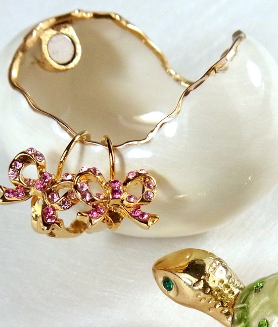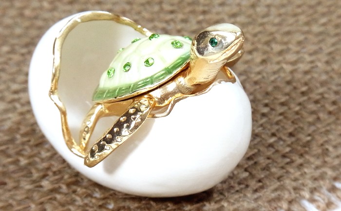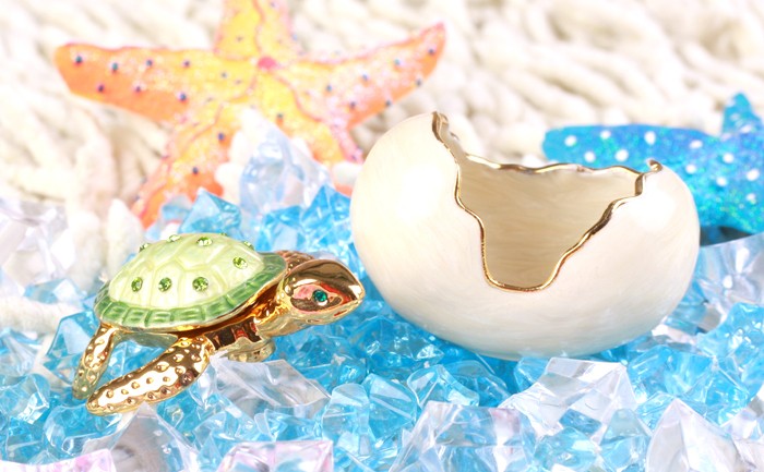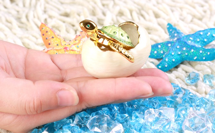 | ジュエリーボックスと言えば、指輪やピアス、ネックレスなどのアクセサリーを入れる引き出し型のケースを思い浮かべる方が多いかもしれません。 ピィアースのジュエリーボックスは、動物や花などをモチーフに作られ、合金製でずっしりとした重さがあります。また高品質のクリスタルガラスを贅沢に使用。まるでジュエリーボックスそのものが宝石のような、高級感溢れる仕上がりです。 小物入れとしても使えるように開閉口には磁石が取り付けてあり、アクセサリーなどなくしやすいアイテムの収納ができます。キラキラと美しく輝く宝石箱は、そのまま飾って楽しめるインテリア雑貨として多くの方に愛されています。 国内トップクラスのジュエリーボックスメーカーであるピィアースは、2004年ごろから本格的に宝石箱の製造を始め、現在のジュエリーボックスはなんと300種類以上。大規模展示会でもご好評いただいており、全国有名百貨店でも販売されています。 自社工場でひとつひとつ丁寧に手作りし、原型作成、研磨、加工、着色、小さなクリスタルガラスの取り付けなども全て手作業で行われるこだわりのハンドメイド品。完成後は厳しい検品の後、丁寧に梱包作業をしお客様にお届けしております。 ピィアース商品は、全国有名百貨店および全国有名宝石店チェーンにてお取り扱いいただいている高品質商品です。 ★自分へのご褒美に…コレクションして並べて飾ると、さらにかわいらしさUP! ★恋人へのプレゼント…中にアクセサリーを入れて、サプライズな贈り物として ★家族への感謝ギフト…お母さんや姉妹へ、日頃のありがとうの気持ちを込めて ★誕生日プレゼント…お友達の喜ぶ顔が見たいから、いつもと違うキラキラギフトを ★小さな女の子へ…まるでお姫様が使っているようなキラキラ宝石箱は女の子の憧れ! |