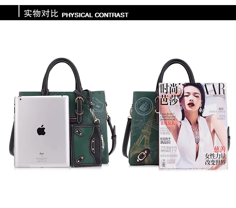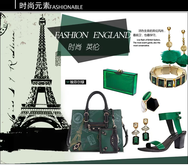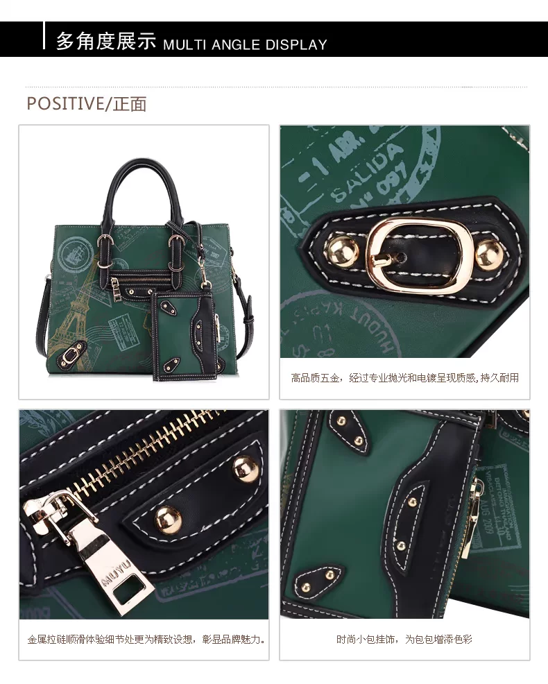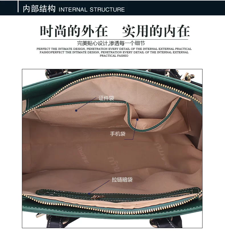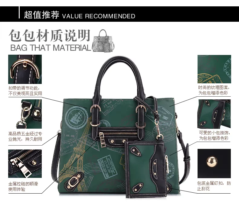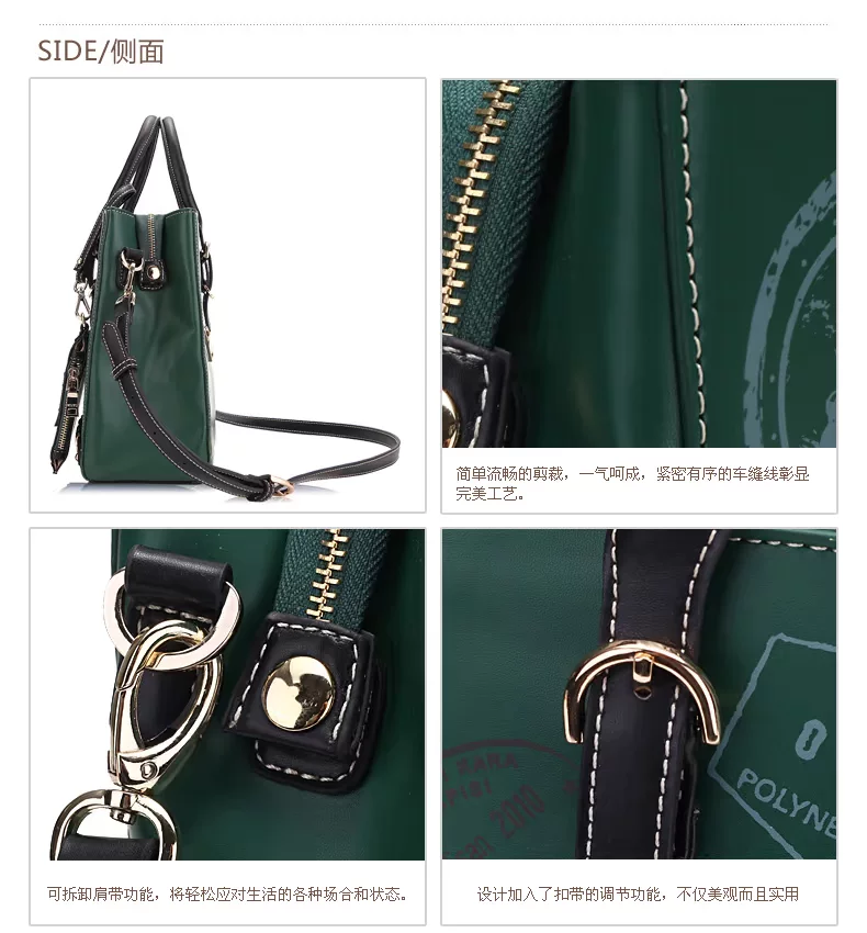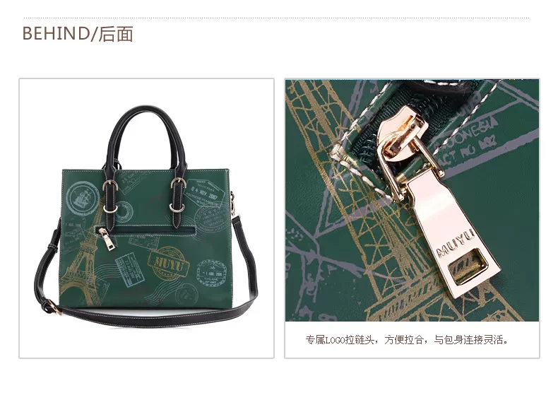 Style: Handbag Texture: PU Material Technology: soft surface Carry parts Type: The soft Closed way: zipper Internal Structure: zipper pocket cell phone pocket document bag Color: Green Eiffel Whether the sandwich: None Bags Hardness: Soft Whether folding: No Condition: New Applicable scene: Leisure Bag size: big (the longest side!#!gt!*! 50cm) Shape: square cross-section Strap styles: single Lining Material: Polyester