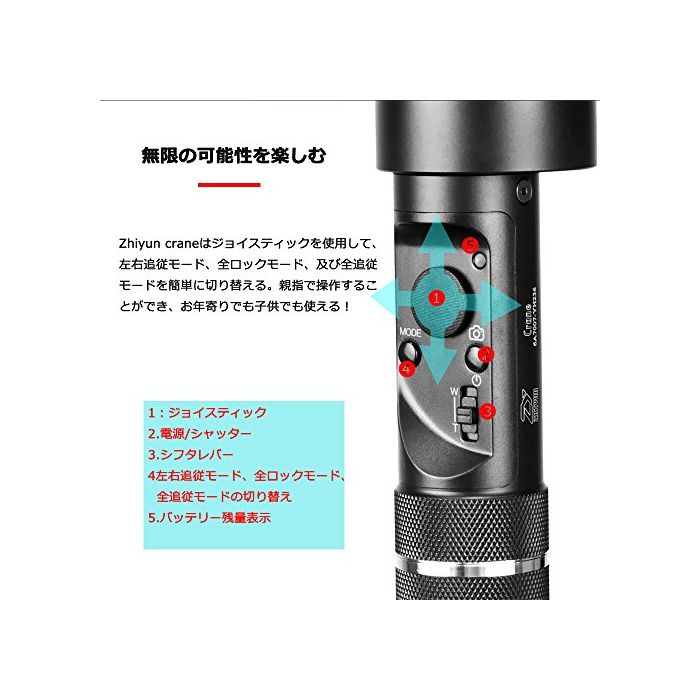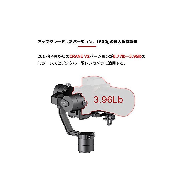 원본상품명: Zhiyun Crane V2 新型3軸手持ちジンバル 撮影安定 ジャイロ ハンドル スタビライザ 360度無制限回 3.96lb最大負荷重量 ミラレスと一眼レフカメラ キヤノンMシリズ、ニコ