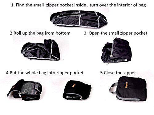 -. Feature : ★ COMPACT - Folds into zippered inner pocket to fit anywhere. Unfolds from pocket to backpack. Really need it on every trip. / ★DURABLE - The backpack is made from highly rip and water resistant nylon fabric, provide strengthen and long-lasting performance with minimal weight. Stress points are reinforced with bar tacking for increased longevity. Durable 2-way Abrasion Resistant Metal Zipper across the backpack. / ★LIGHTWEIGHT(0.5 Pounds) and ROOMY(20 Liters) - True space saver. Stuff the bag into its own pocket for storage---no extra fees, and unzip it when you reach your destination. Avoid overweight charges, simply unfold from your lage and use it as a carry on for your excess baggage. / ★ VARIOUS OF 6 COMPARTMENTS - Features multi pockets for storage or organization. Including 1 main compartment with zipper , inside has 1 smaller zipper pocket. On the outside are 2 front zipper pocket and 2 side pockets to bottle and umbrella. / ★ Warranty - Our Promise-Lifetime Warranty-Exchange, return, whatever it takes.