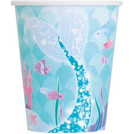 -. Feature : Complete set for girls mermaid birthday or sleepover party - serves 16 and includes:. / 16 mermaid dinner plates, 16 mermaid cake plates, 16 mermaid cups, 16 mermaid napkins. / (1) mermaid plastic tablecloth. / Color scheme features aqua/teal, pink and purple.