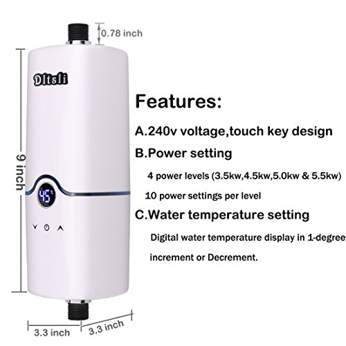240V Instant Electric Hot Tankless Water Heater 4 Power Levels (5.5KW 5KW 4.5KW 3.5KW) for Bathroom Kitchen (White)