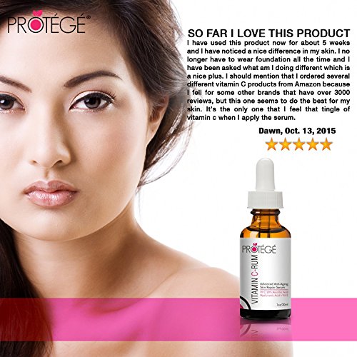 - HIGHEST POTENCY AND QUALITY ANYWHERE Protege's vitamin C serum uses 20% L-ascorbic acid, the best, most effective, natural and easiest-to-absorb form of vitamin C for your skin. Unlike nearly ALL competitors, this serum is 20% Vitamin C, instead of containing 20% Vitamin C concentrate as 1 ingredient. Get the real deal!