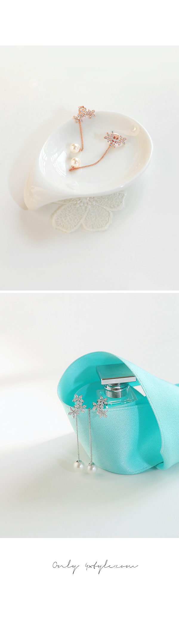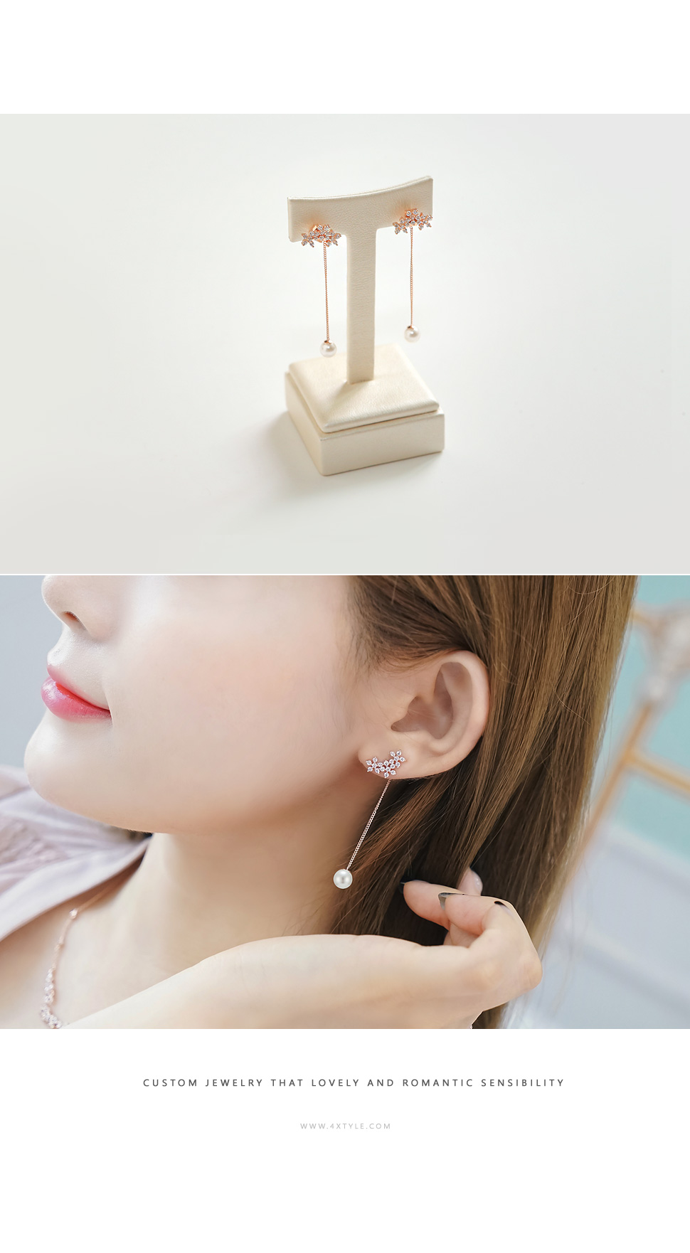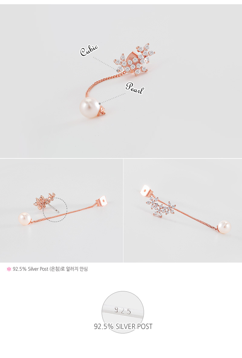 큐빅이 모여 사랑스러운 꽃 모양을 이루고 있는 이어링.