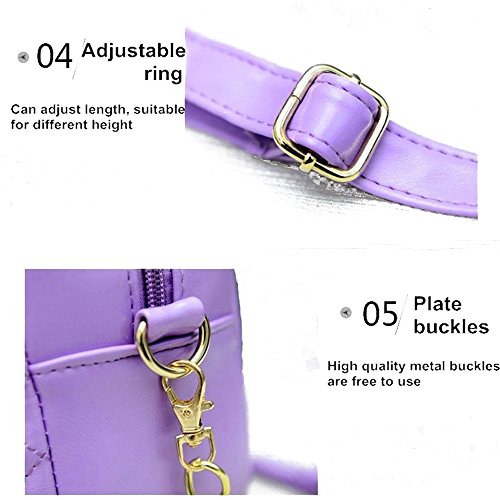 -. Feature : Dimension: 8.67x6.5x3.15Inch,Total Strap Length:48Inch (Can Be adjustable ) / Material : PU&Polyester Closure Type :Zipper / Decoration:Rivet ,Shape :Flap, Hardness: Soft ,Occasion: Versatile / Interior :Interior Slot Pocket ,There Is a Zipper Pocket On The Bag's Back / 5 Colors Are Available :White,Blue,Black,Purple,Pink