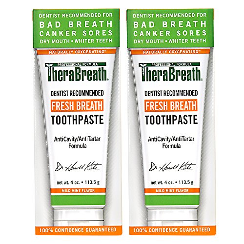 TheraBreath Dentist Formulated Fresh Breath Anti-Cavity Toothpaste, Mild Mint, 4 Ounce (Pack of 2)