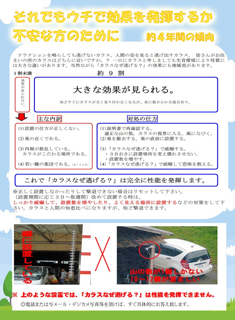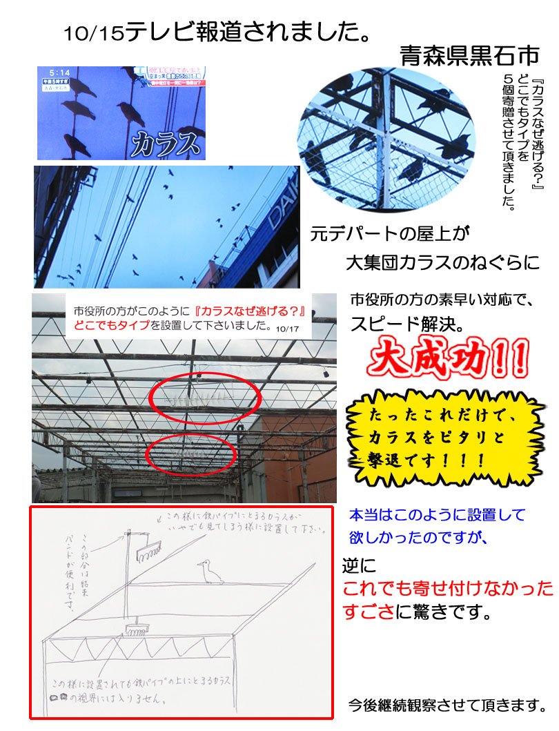 ◇ After installation and observation at the garbage station at the Tsuruoka City Hall in Yamagata Prefecture for about 1 year, the result of "Observable crow repellent effect."