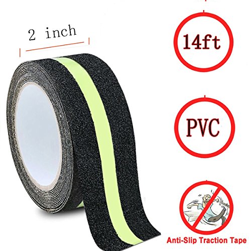 - This is a 2" x14" Luminous Stripe Night Safety Anti slip Glow in the Dark Tape, you can use both inside and outside on sporting skateboard, steps, walkways, hospital, floor, stairs, machines, motor,vehicles, slope, kitchens, canteens.