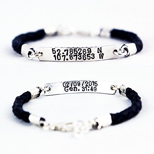 -. Title : Latitude and Longitude coordinates - hand braided Genuine Leather and Sterling Silver bracelet