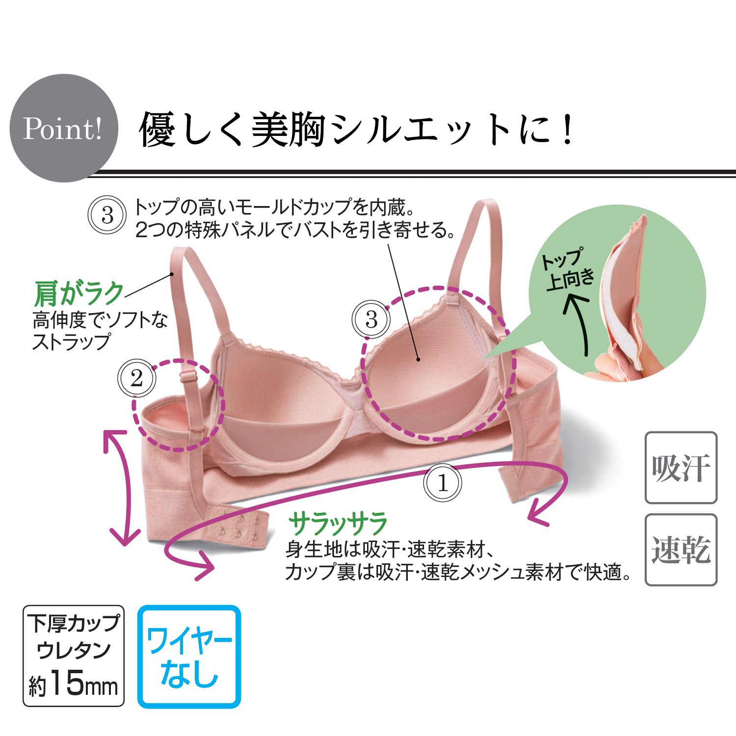 Sweat sweat / quick-drying material for body cloth, sweat sweat / quick-dry mesh for cup back side, and stuck to comfort.