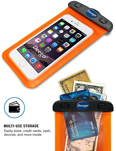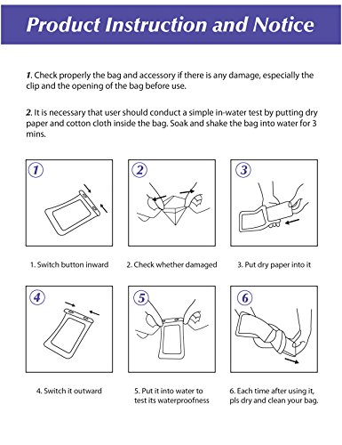 Completely crystal clear window for taking pictures, videos and checking emails button control functionality while the pouch is still equipped .Compatible with devices up to 100 mm x 180 mm(clear window 80mm X 150 mm); Comes with a neck strap for convenient carrying. It provides protection for ID, credit cards, cash, MP3' s, phones, and more from water damage such as fishing, beach and water park activities.