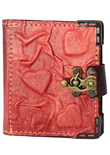 - Title : Embossed Heart Valentine X-mini Refillable Leather Diary / Journal / Lock / Red / Notebook / Plain Paper Pocket Book Women Men Children Office Work