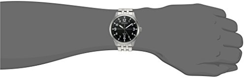 This classic dress watch from Citizen offers polished black on silvertone style with bold white numeral indices.