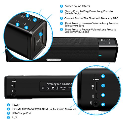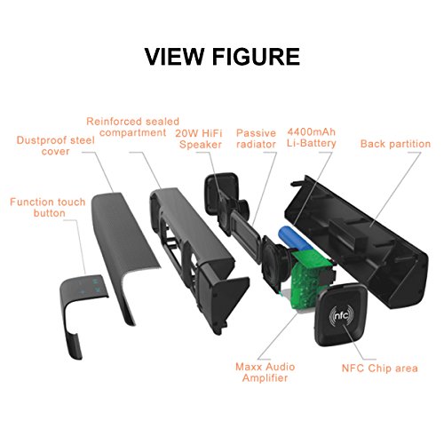 High power shock: Built-in two full-range speakers, rated output power up to 20Watt, intertation of the balance between portable and sound quality, luxury to accommodate two sound.