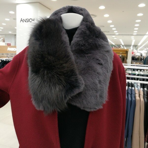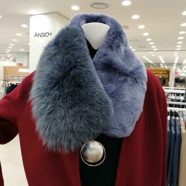 여우털과 토끼털로 트리밍된워머입니다칼라감이 아주예쁩니다코트나 패딩에 따뜻하게연출할수있습니다
