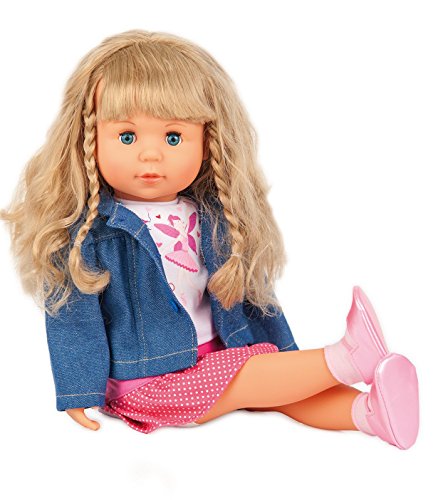 Bayer Design 9467900 - Funktionspuppe Charlene mit Haaren und Schlafaugen spricht, singt 90 Satze 2 Gedichte, 8 Lieder Jeans-Outfit