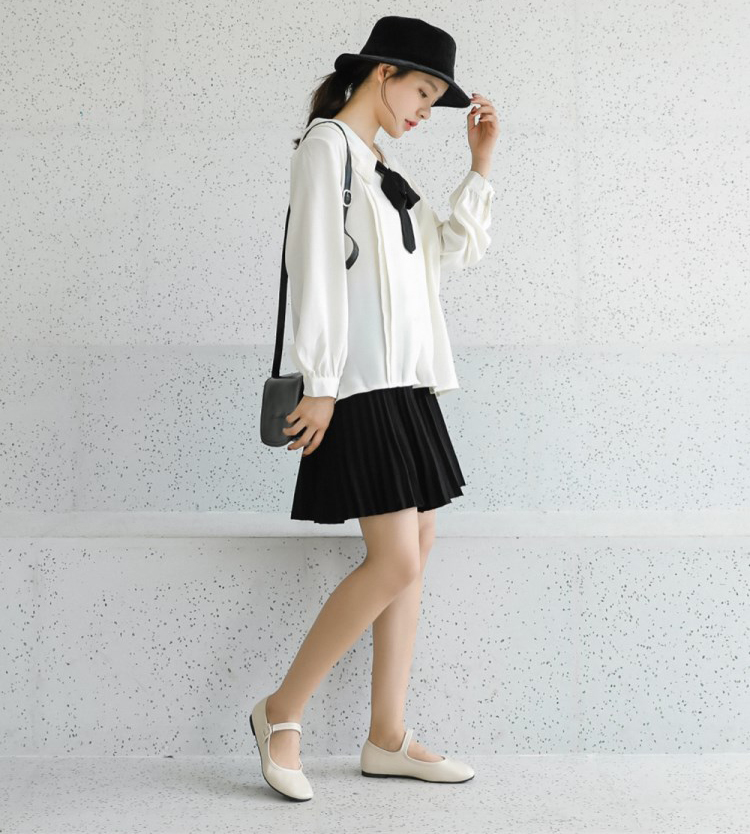 ボウタイ付きなのでリボン結びをしてきちんと感も演出できちゃう1枚です。