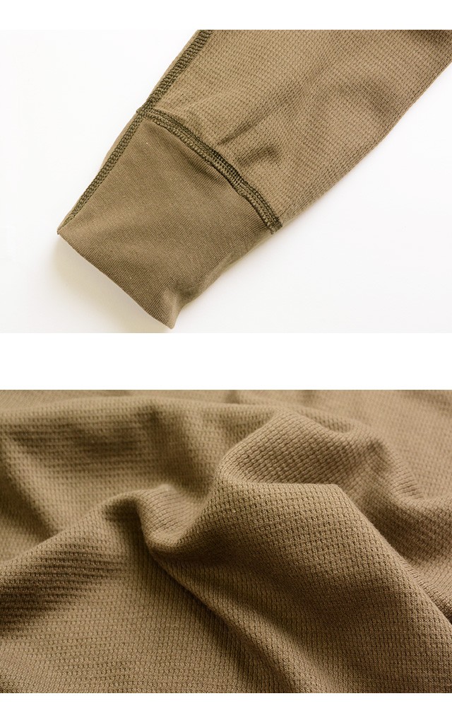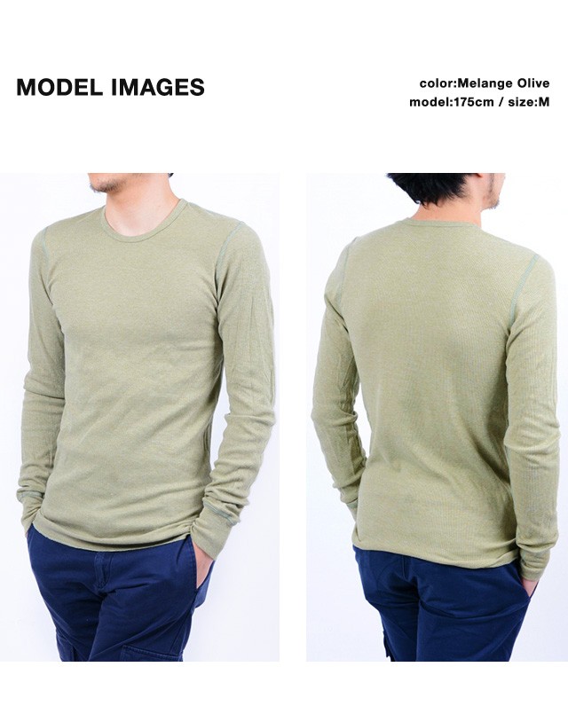 | 商品詳細 | American Apparel アメリカンアパレル 通常のサーマルより細い繊維を編み立てたベイビーサーマル生地のロンT「Unisex Baby Thermal Long Sleeve(ユニセックス ベビーサーマル ロングスリーブ)」。ザックリと粗い編み目のサーマルとは違い、肌触りなめらかで、非常に柔らかく仕上がっています。直接肌に触れるカットソーだからこそ、この肌ざわりの優しさがオススメです!通常より細かな凹凸状のワッフルは空気をたくさん含むので、保温性に優れています。首元はクルーネック、袖は少し長めのリブが付いています。裾はロックミシンの切りっ放しになっており、重ね着をしてもすっきりと着られます。着丈と袖丈は少し長め、インナーとして着る場合、通常より1サイズ程度小さめを選んでちょうど良く着られます! | ||