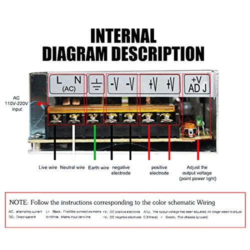 -. Feature : ☆DC 24V 20A POWER SUPPLY - Input: AC 110/220V Switchable; Output: DC +24V (Adjustable±10%)20A ;Maximum Power:500Watts; / ☆High-QUALITY RAW MATERRIALS - Pure Copper Inductors, High-performance Transformers, Dual-capacity Electrolytic Capacitors is The Guarantee of High-quality Power Supply; / ☆MULTIPLE PROTECTION - With Over-voltage Protection, Overload Protection, Overheating Protection and Prevent Short Circuit; / ☆TESTING & CERTIFICATION - This Power Supply is Finished After 48 Hours Burn-in , and Passed The CE and FCC Certification; / ☆WIDELY USED - High quality Switch Power Supply Widely Used in LED Strip, LED Display, Audio Power Amplifier, LED Lighting, Light Box Billboard, etc.