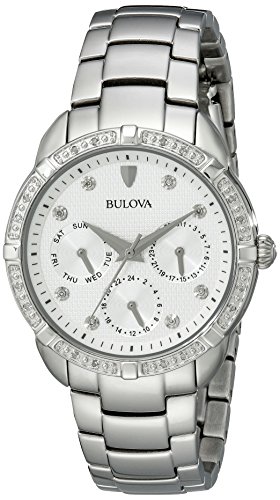 -. Binding : Watch -. Brand : Bulova -. Color : White -. Department : womens -. EAN : 0042429503847 -. Feature : Due to a recent redesign by Bulova, recently manufactured Bulova watches, including all watches sold and shipped by Amazon, will not feature the Bulova tuning fork logo on the watch face. / Mineral flat metalized crystal / Stainless steel case and bracelet / Silver white dial / Water resistant to 99 feet (30 M): withstands rain and splashes of water, but not showering or submersion -. Label : Caravelle New York -. Manufacturer : Caravelle New York -. Model : 96R195 -. MPN : 96R195 -. PackageQuantity : 1 -. PartNumber : 96R195 -. ProductGroup : Watch -. ProductTypeName : WATCH -. Publisher : Caravelle New York -. ReleaseDate : 2014-05-08 -. Size : Standard -. Studio : Caravelle New York -. Title : Bulova Women's 96R195 Multi-Function Dial Stainless Steel Watch -. UPC : 424295038478 -. Warranty : 3 Year Manufacturer Limited Warranty