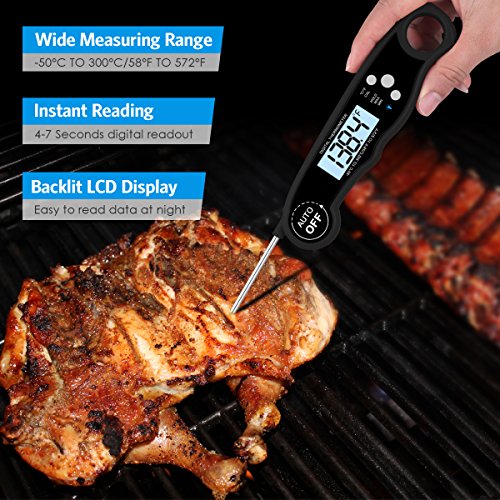 - SUPER FAST READOUT: AMIR meat thermometer will get food temperature out within 3-4 seconds. With an easy to read electronic LCD display, giving you accurate temperature results in seconds. No need to wait for a while. Perfect for outdoor cooking, BBQ, meat, candy, coffee, milk, bath water temperature and so on.
