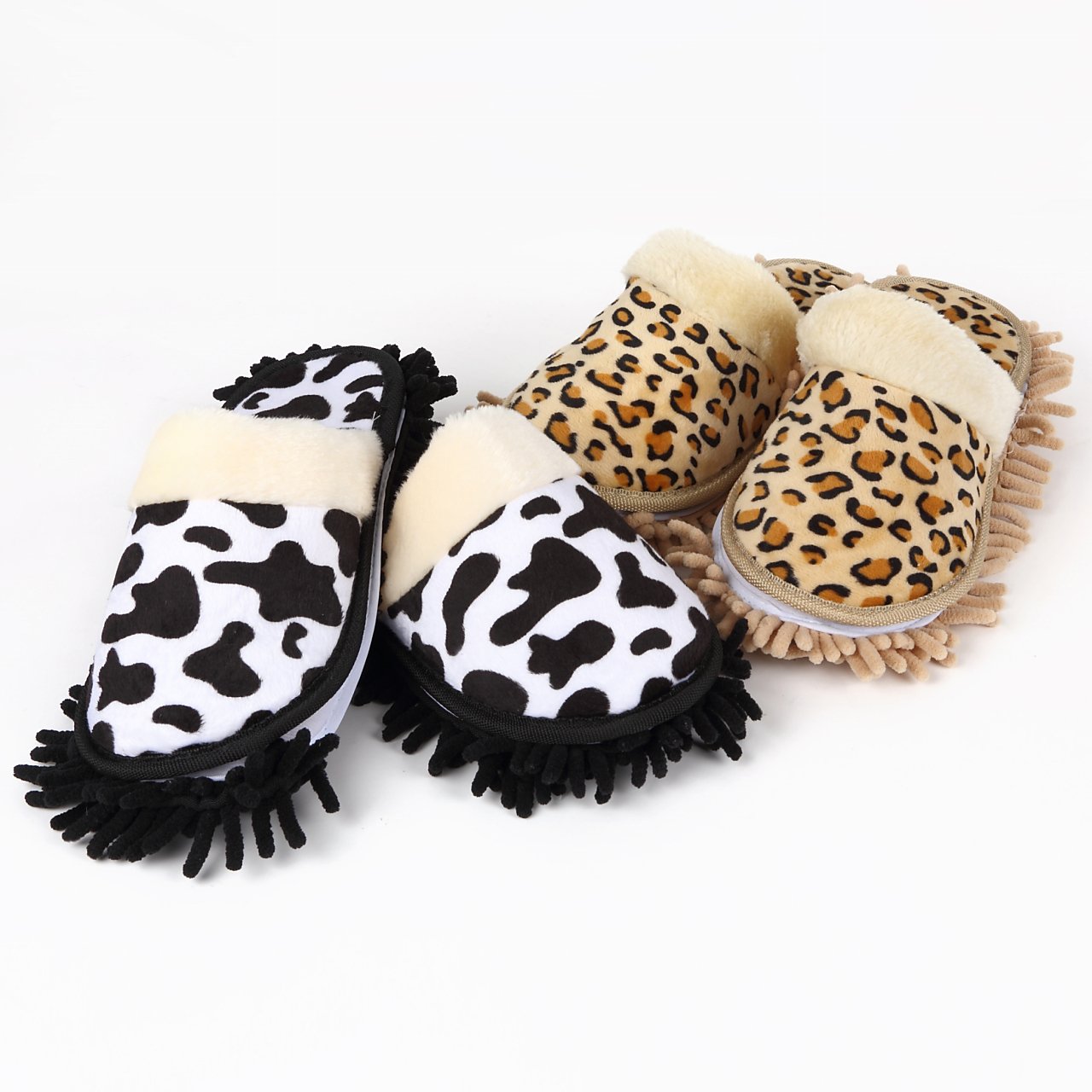 It is an animal pattern mop slippers.