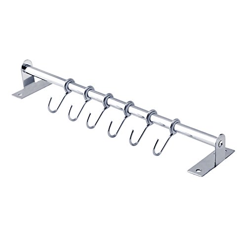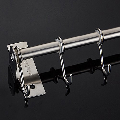 Hanging Utensil Rack hanging is made from premium grade stainless steel so it will not rust and will last for many years. Solid metal construction, strong, reliable and heavy duty design. It is easy to install, looks good and eye-pleasing. It fastens well to the wall and doesn’t wobble. You won't need a handyman to mount this rack. The linear arrangement offers versatility and helps you organize your pots, pans and other utensils effortlessly.