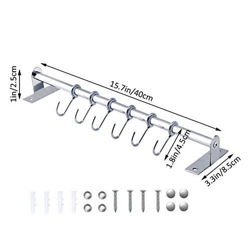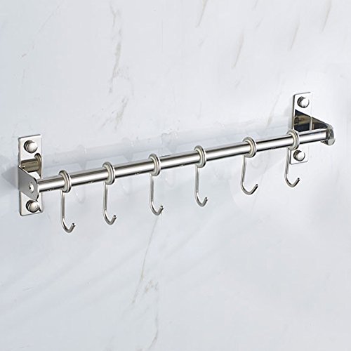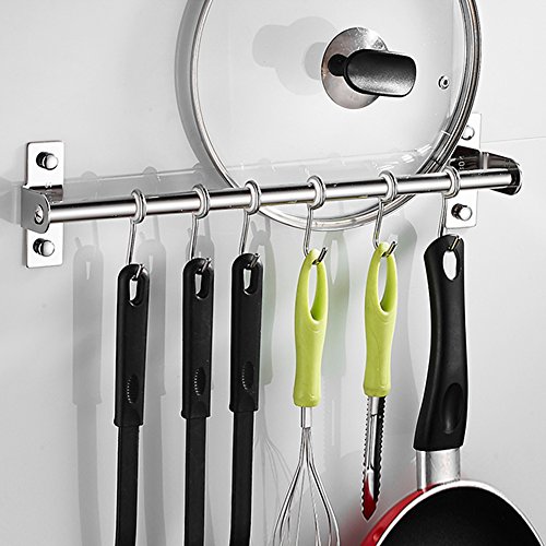 Kitchen Stainless Steel Utensil Hanging Rack To Hold and Organize Kitchen Tools Utensils Pots Pans On Wall Mounted Hanger Bar Rail Pan Pot Rack with 6 S Hooks