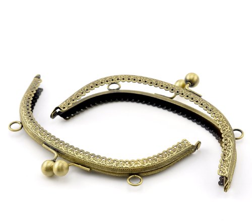 PEPPERLONELY Brand, 1PC Antique Bronze Bead Purse Bag Metal Arch Frame Kiss Clasp Lock 16x9cm(6 2/8"x3 4/8")