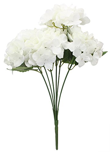 Duovlo Artificial Silk Hydrangea Flower with 6 Heads Flower Bunch Bouquet Home Wedding Garden Floral Decor (White)