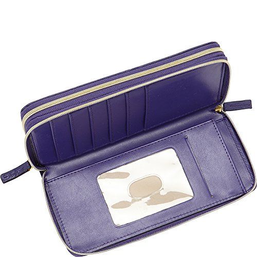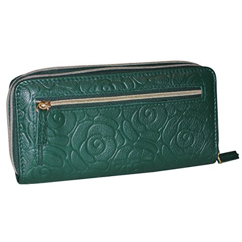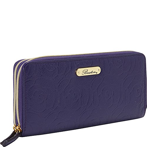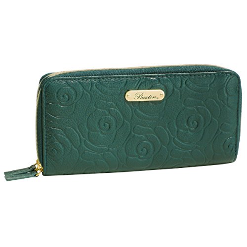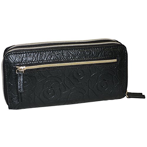 -. Brand : Buxton -. Color : black -. Department : womens -. Feature : Naturally milled leather with smooth genuine leather trim / Satin gold tone logo plaquehardware / Two full zip compartments with multiple credit card slots / ID window and outside zip coin purse -. Label : Buxton -. Manufacturer : Buxton -. PackageQuantity : 1 -. ProductGroup : Shoes -. ProductTypeName : HANDBAG -. Publisher : Buxton -. Studio : Buxton -. Title : Buxton Rose Garden Slim Double Zip
