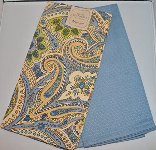 -. Title : AP.R.Il Cornell Paris Paisley Fall Set 2 Teatowels Dish Towels Blue Yellow Green