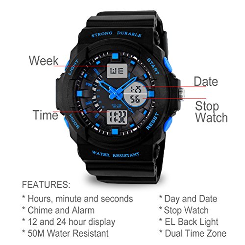 This watch is of good quality, durable, with digital and analog display, waterproof and back light function.