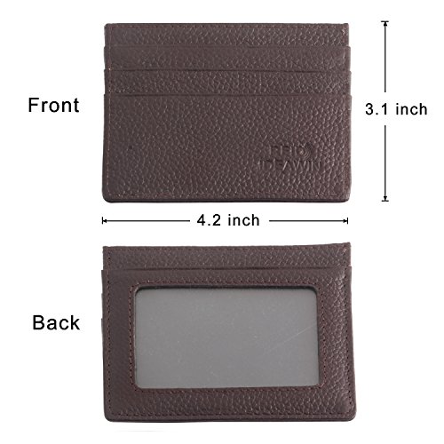 -. Binding : Apparel -. Brand : IDEAWIN -. Department : womens -. Feature : ✓ ULTRA SLIM FRONT POCKET WALLET.Package dimensions: 3.94"x 3.35" x 0.07" inches . This RFID Blocking card wallet is designed to be slim and feels amazingly soft. Sturdy enough to last a long time, its super slim figure (only 0.2 cm/0.08 inches thickness) makes it easy to slide into your front pocket. It is super thin, fits perfect in your pocket and can hold at least 6 cards and some folded cash comfortably. / ✓ MADE FROM GENUINE PREMIUM LEATHER. This super thin RFID Blocking card wallet is made from premium genuine leather,durable and stylish,comfortable to use.Great slim card sleeve wallet for carrying your most frequently used cards and some bills. / ✓RFID PROTECTTION WALLETS:This RFID Blocking card wallet equipped with advanced unique military grade proprietary rfid blocking lining material , it helps prevent Identity Theft ,prevent Electronic Pickpocketing of your card account information .This RFID Blocking card wallet give secure protecion ,with amazing 3 card slots and 1 ID window,they also has a middle compartment where you can put notes, receipts or some folded cash. / ✓ MINIMALIST WALLET DESIGNED FOR PRATICALITY. The slim RFID Blocking card wallet front pocket wallet is light in weight (0.7oz only) , perfect for a night out tucked away almost invisibly in your pocket and it won't look like that you are bring a brick when you are bringing all the necessary. Professional for business cards or a small wallet which carry the cards you often use. / ✓ GREAT COLOR SELECTION. It is just the card case wallet you will need in your daily life without being that fancy, we offer several colors for you to choose , no matter you are a elegant lady or a gentleman, you will find the right color to fit your style. Whether you wear jeans, shorts, or slacks, it fits perfectly in front or back pocket without being noticed. Ideal gift for your family members and friends. -. Model : 889-ID31RR-P -. ProductGroup : Apparel -. ProductTypeName : ACCESSORY -. Title : IDEAWIN RFID Blocking Card Wallet with ID window Genuine Leather Card Holder