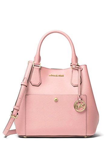 -. Brand : MICHAEL Michael Kors -. Color : Blossom -. Department : womens -. EAN : 0191262404689 -. Feature : Saffiano leather / Dual rolled top handles / Single detachable, adjustable crossbody strap, top snap closure / Exterior features 1 front snap closure slip pocket - Interior features 1 zip pocket / Approx. 10.5" H x 15.75" W x 6.75" D - Approx. 4.75" handle drop, 21-23" strap drop -. ProductGroup : Shoes -. ProductTypeName : HANDBAG -. Title : MICHAEL Michael Kors Large Greenwich Grab Bag Satchel Tote - Blossom -. UPC : 191262404689
